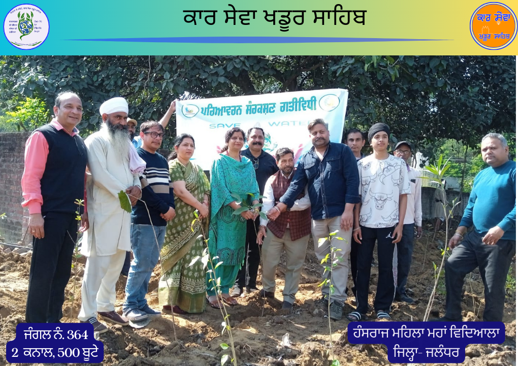 ਇਸੇ ਲੜੀ ਤਹਿਤ ਮਿਤੀ 01 ਮਾਰਚ 2026, ਹੰਸਰਾਜ ਮਹਿਲਾ ਮਹਾਂ ਵਿਦਿਆਲਾ ਜਿਲ੍ਹਾ ਜਲੰਧਰ ਵਿਖੇ 2 ਕਨਾਲ ਵਿੱਚ 500 ਰੁੱਖ ਲਗਾਏ ਗਏ, ਜਿਸ ਵਿੱਚ 50 ਕਿਸਮਾਂ ਦੇ ਫਲਦਾਰ, ਫੁੱਲਦਾਰ, ਛਾਂਦਾਰ ਅਤੇ ਦਵਾਈਆਂ ਵਾਲੇ ਬੂਟੇ ਲਗਾਏ ਗਏ।